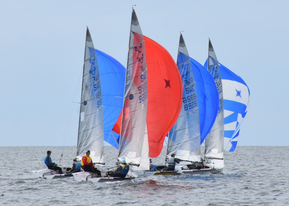SM i 505 i Varberg avslutades i söndags. Regattan ingick också i 505 Euro Cup 2023. Euro Cup-tävlingen vanns av tyska ”far och son”-teamet Tim och Finn Böger. De spikade fyra race och hade ingen placering sämre än sjua. Danska ”dotter och far”-teamet Fabiola och Michael Wonterghem utmanade dem om segern ända till segling 10, som Bögers spikade medan Wonterghems blev sexa. De slutade tvåa i Euro Cup-tävlingen. Peter Bökmark/Martin Persson, BKSS, spikade två race, men hade också ett par lite sämre resultat, men det räckte till tredjeplats i Euro Cupen och framför allt det det en SM-seger och inteckning i klassiska vandringspriset Hornet.