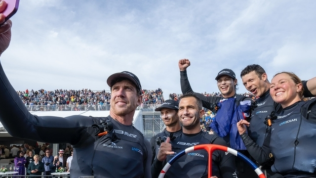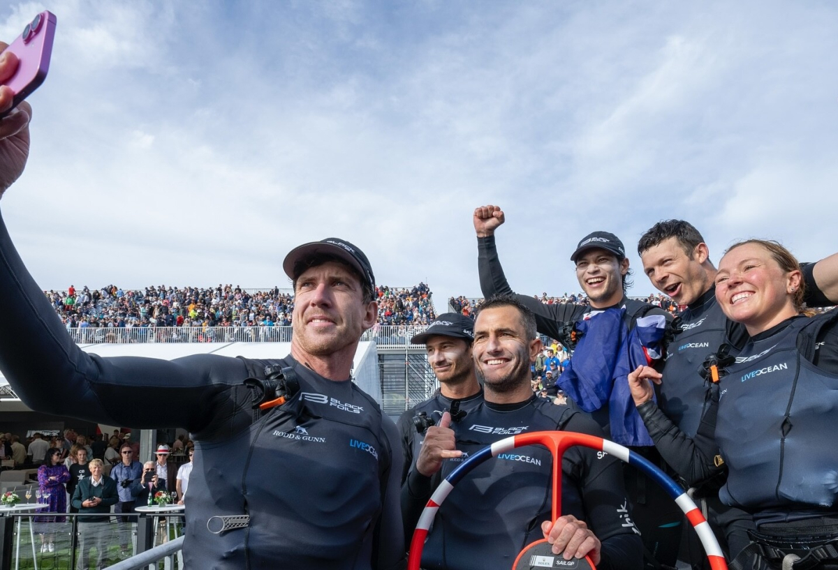I fotografiet ovan firar rorman Peter Burling med en lag-selfie inför rekordpubliken (20 000 sålda biljetter vilket är rekord exklusive åskådare på vatten och naturliga utsiktsplatser i området) som även den hyllades till skyarna.
