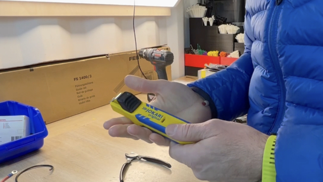 Kabelkniven Jokari original är väldigt lätt att använda. Ett tips dock; testa först ett par gånger för att lära känna verktyget och få till rätt inställning på knivbladets djup.