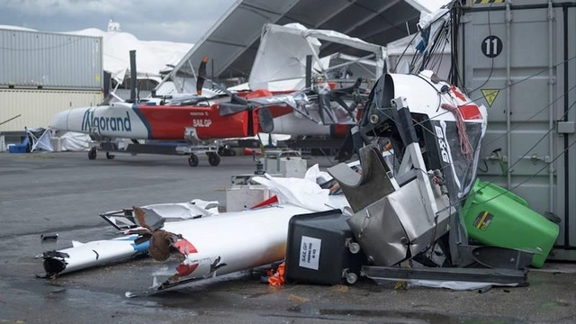 Arrangörens första bedömning är allvarlig skada på flera vingar och minst en båt. Dagens kappseglingar är inställda.