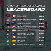 Tidigare under dagen lyckades man köra igenom tre spännande race i friska vindar. Det bjöds på en hel del dramatik, inte minst när Matt Gotrel (i numera Emirates Great Britain SailGP Team) ramlade av den brittiska båten. Laget som utan tvekan trivdes bäst i förhållandena var France SailGP Team med Quentin Delapierre i spetsen. Fransoserna vann samtliga 3 race och fick kliva högst upp på pallen med totalt 30 poäng. Andra och tredje plats knep USA (24 poäng) respektive Australien (20 poäng).