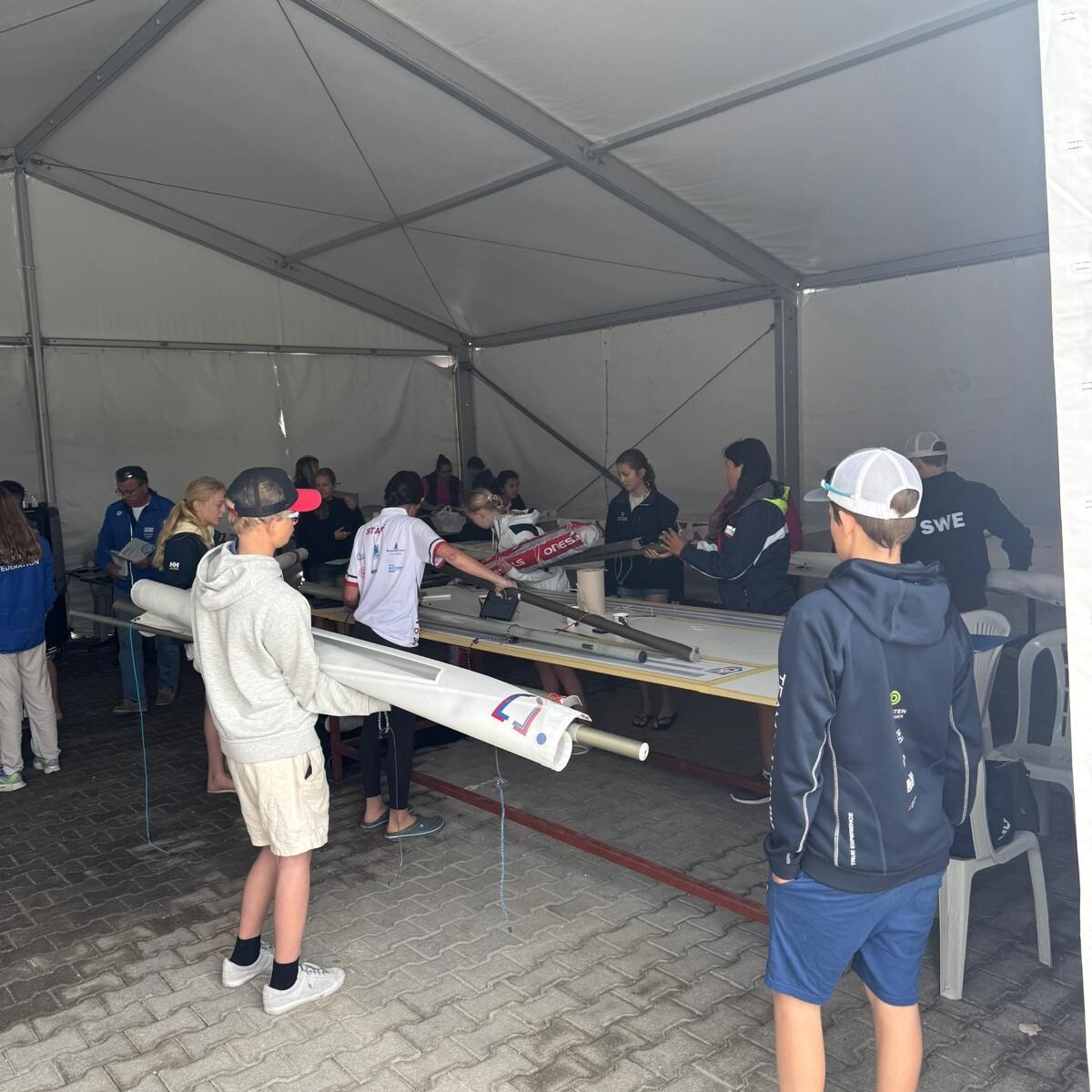 Inmätningen och invigning är avklarad. På fredag börjar tävlingen. Foto: Team Sweden Optimist European Championships
