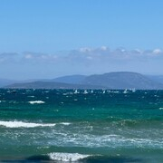 Cesme, där EM går, ligger på Turkiets västkust, strax nordväst om Izmir, och är regattans bas i den skyddade viken Ilica Bükü. Soliga dagar drar termiska vindar in under förmiddagen och når ofta 6-8 m/s, vilket ger grymma förhållanden för segling. På träningsdagarna innan har det dock varit mer vind än så.