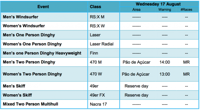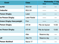 Dagens program, det är bara 470 dam och herr som seglar idag, 49er och 49er FX har sina medaljrace kvar till i morgon.