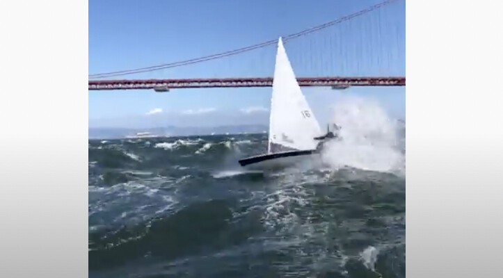 Lasern konstruerades av de två kanadensarna Bruce Kirby och Ian Bruce. Den visades officiellt första gången vid New York Boat Show 1971. Här flyger de fram på vattnet väst om ikoniska Golden Gate Bridge i vindar på 25-35 knop och skön surf.