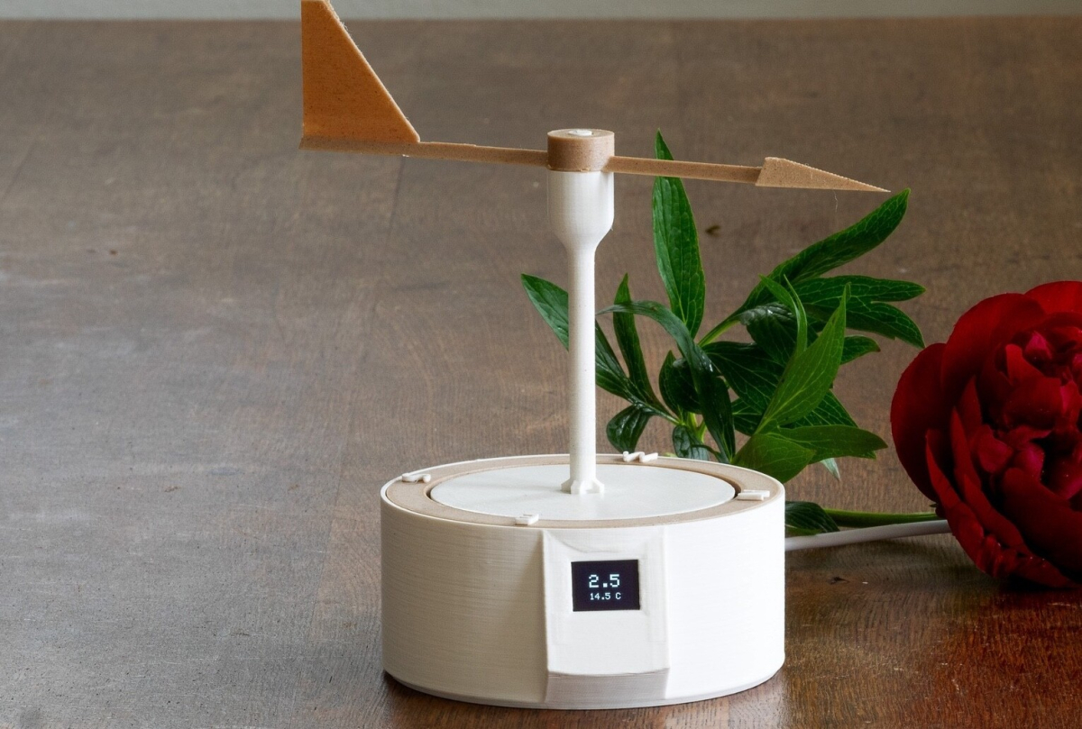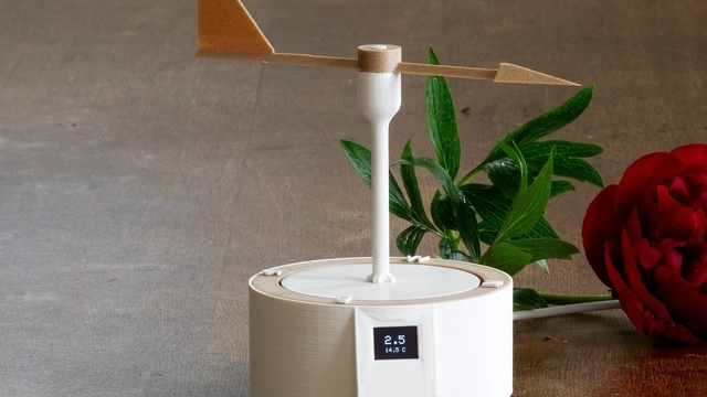 WindFlag är en väderstation som består av en 3D-printad låda, en mikrokontroller, en motor och en liten bildskärm som uppdaterar vinden i realtid från vald vindmätare. Pilen vrider sig efter vinden precis som en Windex på en segelbåt och på bildskärmen visas vindstyrkan och temperaturen i luften.