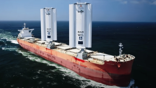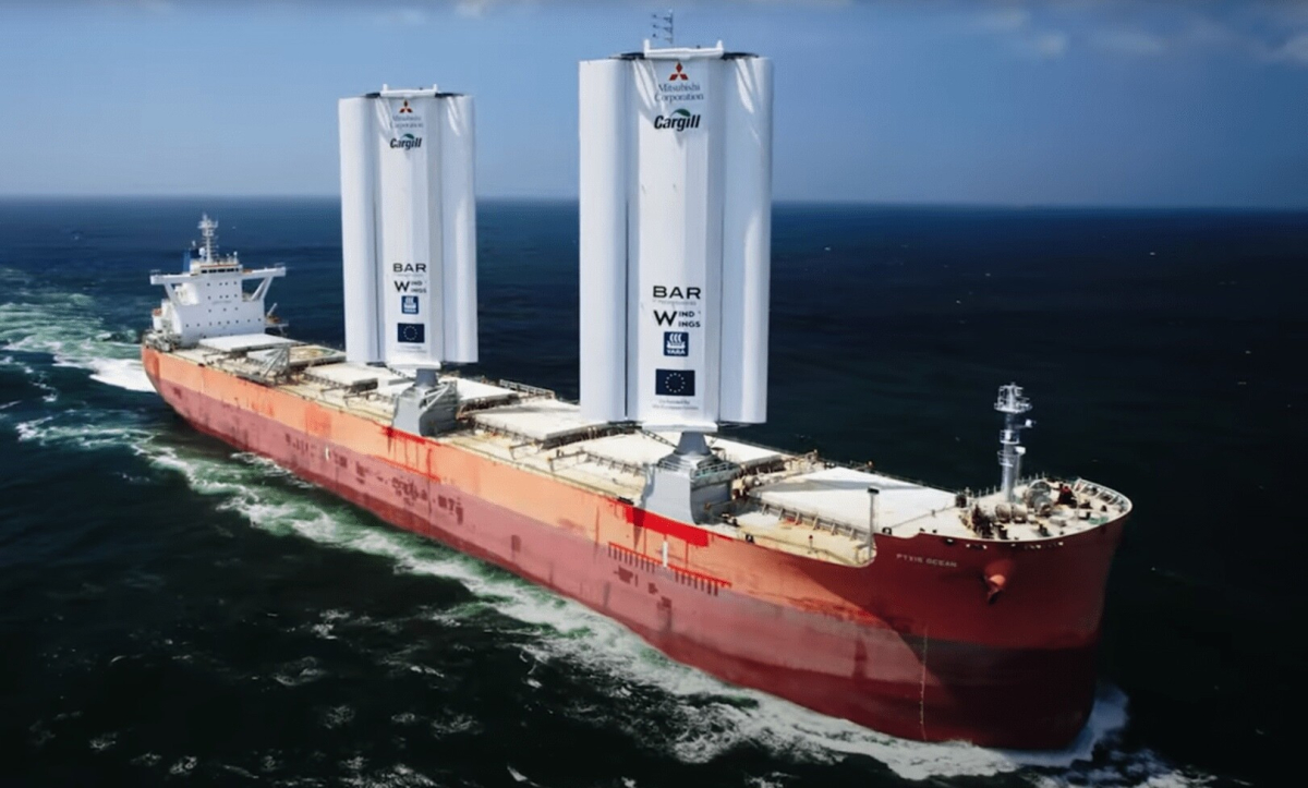 Mitsubishi Corporations Pyxis Ocean, chartrat av Cargill, är det första fartyget som eftermonteras med två stora vingsegel (WindWings sträcker upp till 37,5 meter) på däck. Vingseglen, som är tillverkade av partnern Yara Marine Technologies, förväntas generera en genomsnittlig bränslebesparingar på upp till 30 procent (gäller nybyggda fartyg) vilket kan bli ännu högre om de används i kombination med alternativa bränslen. Installationen av vingseglen ägde rum på COSCO-varvet i Kina och Pyxis Ocean är nu ute på sin jungfruresa. Vi håller tummarna för att den skall bli lyckad.