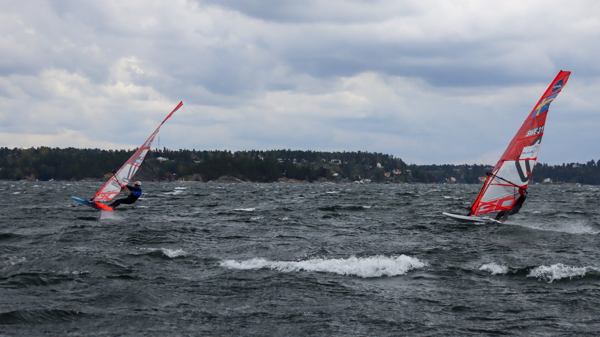 Helgen inleddes med en mycket blåsig lördag på grund av stormen AMY, som du kan läsa mer om i notisen Stormen AMY. Tyvärr gjorde detta att endast iQFOiL U19 och Formula Foil fick igenom seglingar under lördagen. Övriga klasser började dagen med APA som relativt tidigt följdes upp med APA över A vilket betyder att det inte kommer genomföras några fler seglingar den dagen. Vissa vågade sig ändå ut för ett roligt träningspass på Baggensfjärden.