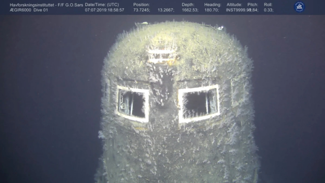 Trots att ubåten sjönk för mer än 30 år sedan, avger den fortfarande strålning. Undersökningen är gjord med hjälp av en fjärrstyrd undervattensfarkost.