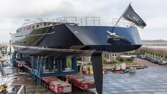 Den 81 meter långa segelbåten, designad av Dykstra Naval Architects, men en interiör av Mark Whiteley Design, ska nu flyttas till Amsterdam där hon ska få en över 60 meter hög kolfiberrigg från Rondal Panamax innan man börjar besättningsutbildning och sjötester.
