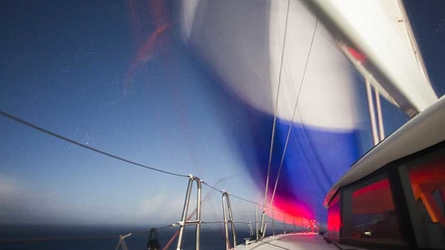 Gippen var den bästa vi gjort hittills, Philip koordinerade bra från rorsmansplats och valde en lagom snabb surf att gippa i. Christan och Greg i sittbrunnen fick till trim och jag och Alain på fördäck såg till att vi fick runt spinnakern utan missöden. Manövern tog mindre än nio minuter från det att vi började prata om det. Lite skillnad från matchracingen där vi ibland gippar 10 gånger under en tvåminuters start. Så nio minuter kanske inte låter så men då skall man komma ihåg att, alla skall vakan till, vi skall lossa våra preventergajar från storbommen, förbereda skot och så vidare. På en havskappsegling vill man göra sakar rätt från början hellre än att stressa och göra fel. Skulle vi göra sönder en gennaker skulle det innebära ett stort tapp i prestanda i vissa vindar. Vi seglar ett maraton inte en sprint.