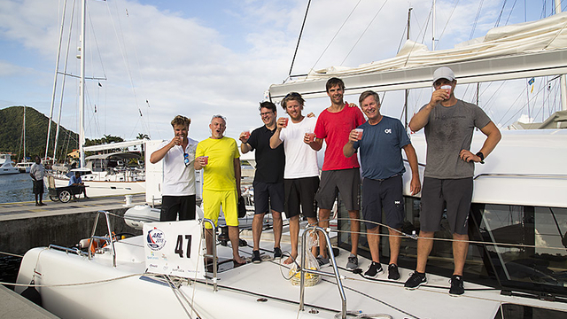 I gryninsljuset dök spetsiga toppar klädda i intensivt grön vegetation upp på horisonten. Kl 07:08 UTC korsade vi mållinjen, vi är den tolvte båten i mål av nästan 200 deltagare, vi har seglat i 13 dagar och 18 timmar. En kort stund senare hoppar vi i land välkommans med en romdrink och färsk frukt. Vi är lite trötta, ganska stolta men känner också ett litet stygn av vemod över att det är slut nu, precis som det skall kännas när man varit ute på ett fint äventyr med trevliga människor.