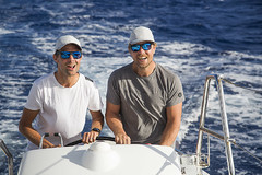 Det har varit en härligt seglats, det har varit upp och det har varit ner, precis som det skall vara på ett äventyr. Kappseglandet var väldigt kul tills förutom två incidenter som gjorde att vi förlorade runt ett dygn till våra konkurrenter. Först fastnade vi ett fiskenät dag fem men löste det på ett bra sätt, bara ca tre timmars tidsförlust. Dag nio däremot kom dödsstöten för vår tävlingsinsats. Vi tappade vårt gennakerfall och vår stora A2a åkte i sjön och gick sönder. Det var fallets surrning i masttoppen (det är ett 2:1 fall) som fallerade. Det sattes dit i somras av en professionell riggare och kontrollerades strax innan avfärd. Vi har inte helt lyckats utreda hur det kan ha skavts av, antingen är det något i riggen som skaver eller så var surrningen feldimensionerad. I alla fall lyckades vi lösa det med ca sex timmars tidsförlust. Men tyvärr har vi varit handikappade i lätt vind sedan dess och har inte kört för fullt. Våra konkurrenter S’Arnenella och Sea Child gick i mål med bara några minuter emellan för ungefär ett dygn sedan. Ett stort grattis till dom och tack för bra sparring.