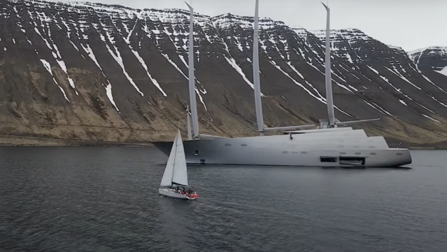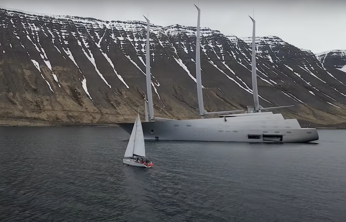 Den omtalade segelbåten A, som också är världens största, sågs senast på Island. Och det är ingen tvekan om att båten berör; kanske är det priset som upprör (Hur kan något så "fult" kosta så mycket pengar?), eller svårigheterna att placera den i ett fack (Är det en motor- eller en segelbåt?).