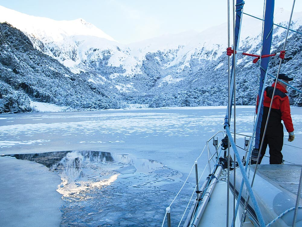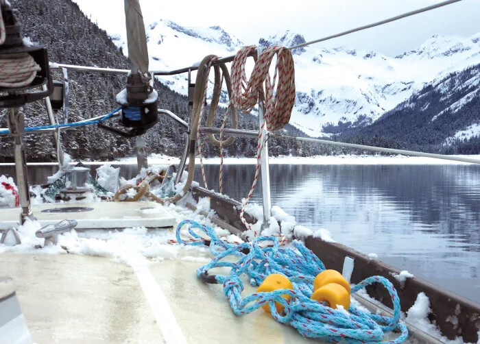 Utöver de vanliga åtgärderna som tas för att förhindra en man över bord, så ska man se till att noggrant rensa däck från snö och is. Karin berättar att salt användes på däck på J/70-båtarna för att få bort den värsta isen. På Tamara har Nancy och Nick en samling snöskyfflar, kvastar och borstar av plast som möjliggör effektiv snöröjning utan att skada däcket eller dess halkskydd. En däcksspolningsslang hämtar vatten från havsvatten och tar sedan bort den sista snön och sötvattenisen under alla omständigheter utom de mest extrema.