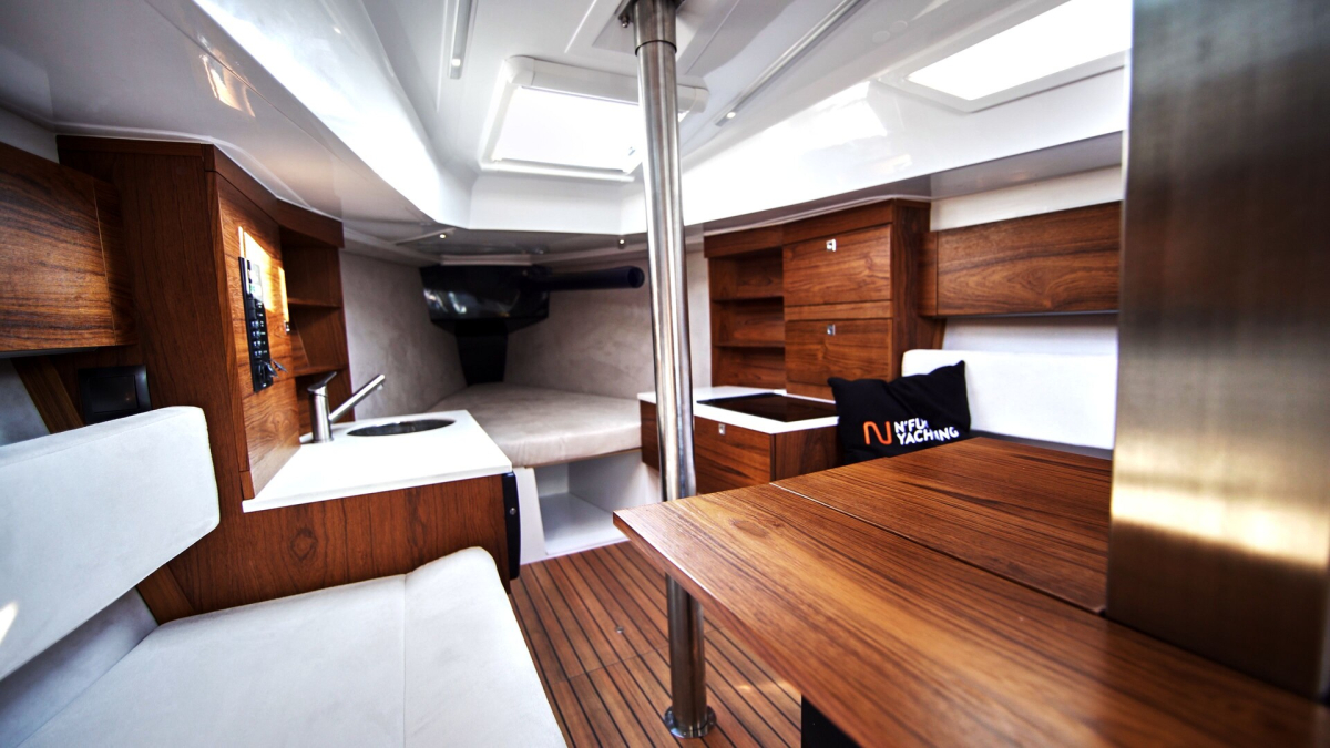 Trots N'Fun 30:s storlek och sportiga uttryck har ett av målen varit att skapa goda möjligheter att bo ombord. Foto: N'Fun 30