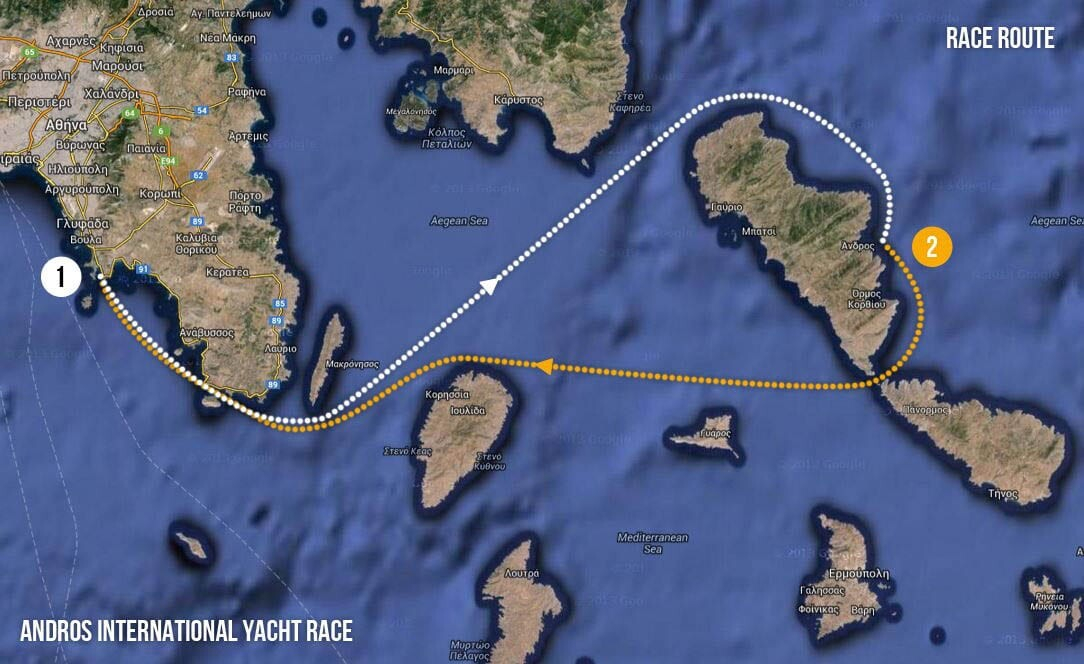 Båten deltar i årets upplaga, den 56:e, av International Sailing Race of Andros och enligt uppgift når vindarna uppemot 40 knop.