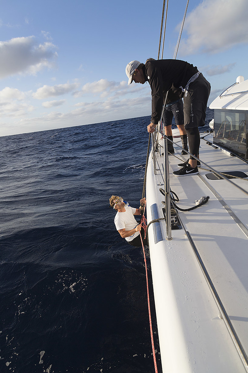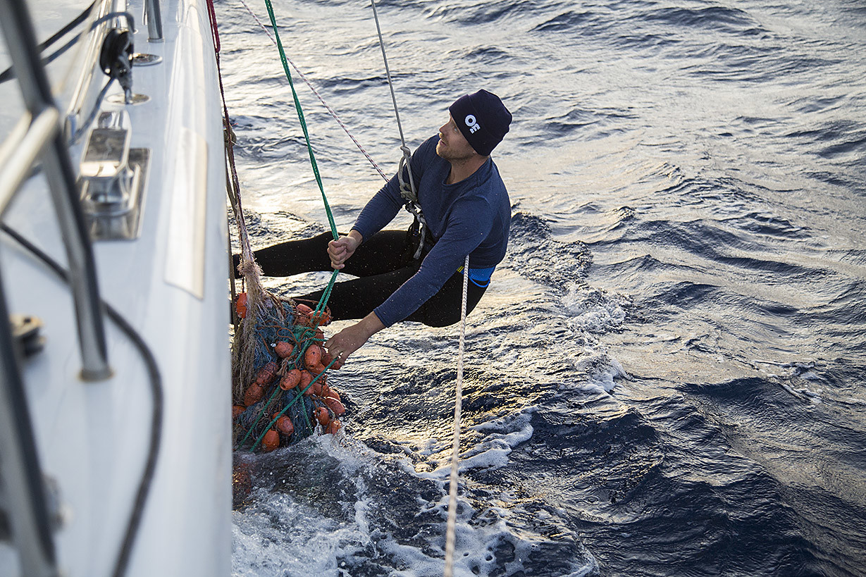 Dygn 5 - Besättningen seglar på ett fiskenät och det blir Fredriks tur att bada!