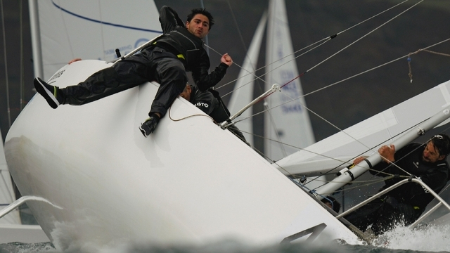 På startlinjen står 50 båtar från 12 länder. I skrivande stund ligger Team Front Runner på åttonde plats med serien 16, 11 och 15.