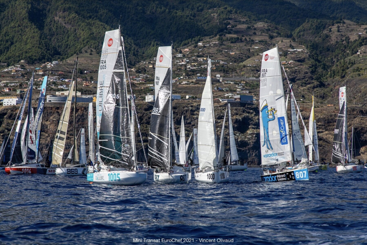 Starten av andra etappen från Santa Cruz de La Palma till Saint-François, Guadeloupe. Foto: Mini Transat EuroChef 2021 / Vincent Olivaud