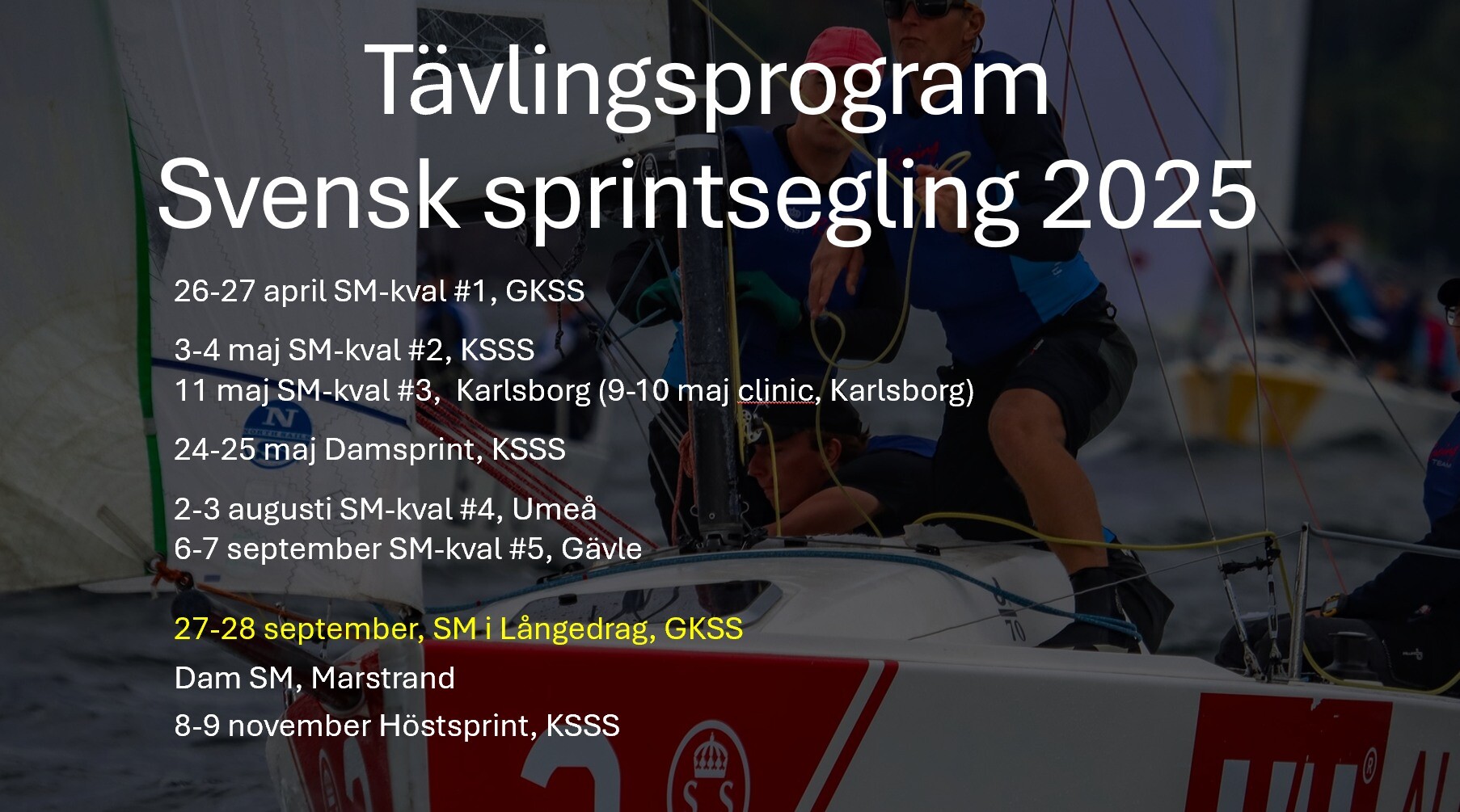Vi är många som fastnat för konceptet. De korta, snabba och taktiska spelet gör sprintseglingen både spännande att segla och att titta på. Nu är nästa säsongs tävlingsprogram spikat så boka in datumen redan nu (se nedan).