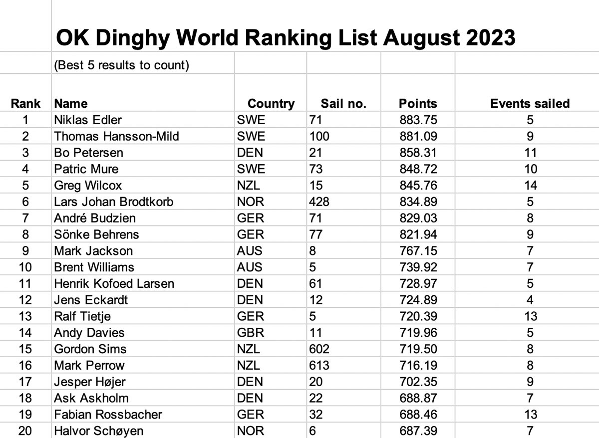 Svenskar toppar världsranking i OK-jolle