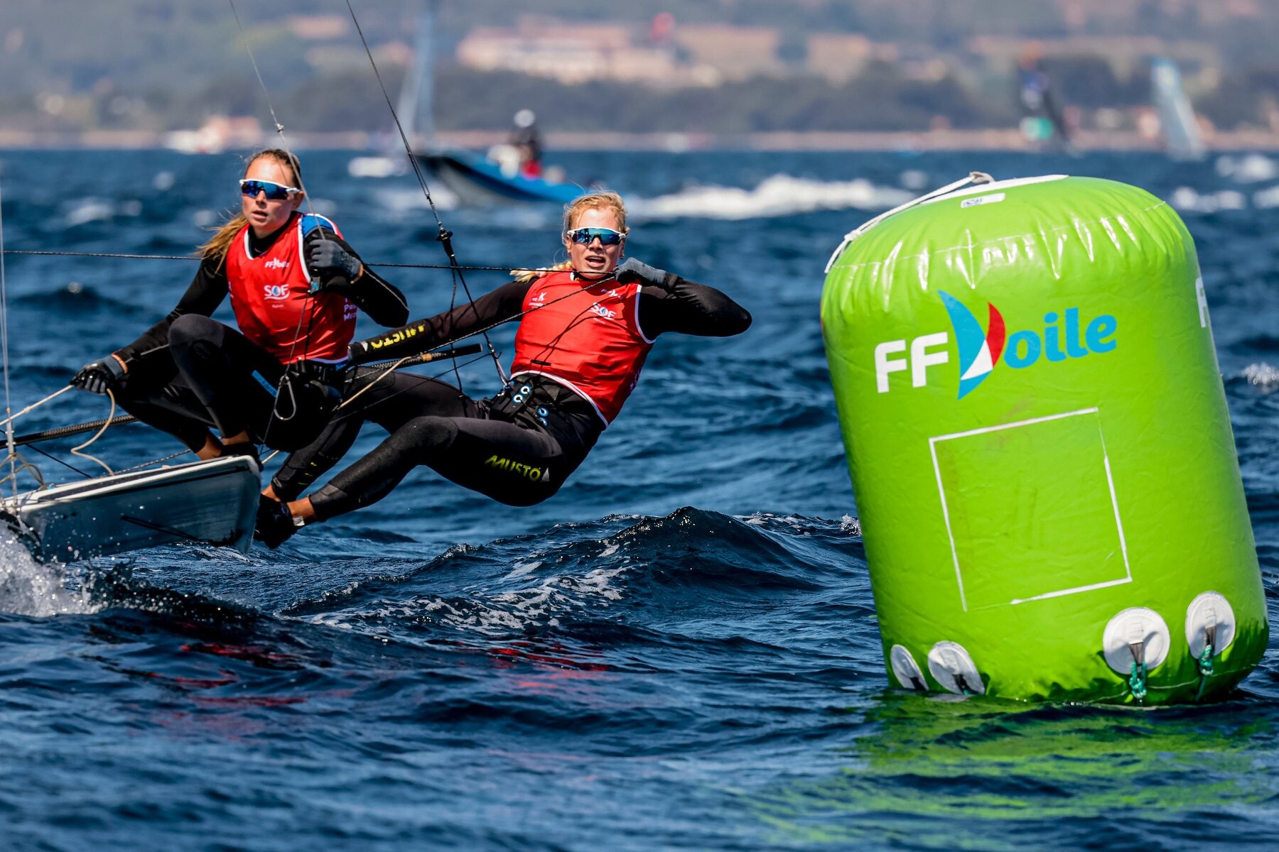 I 49erFX låg Vilma Bobeck/Rebecca Netzler tvåa inför medaljfinalen men lyckades inte helt knyta ihop finalen och hamnade precis utanför pallen. Foto: Sailing Energy