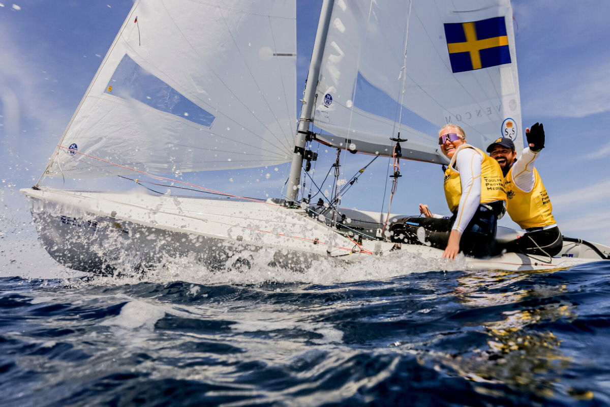 Anton Dahlberg/Lovisa Karlsson vinner sin allra första internationella regatta tillsammans i nya OS-klassen 470 Mixed. Foto: Sailing Energy