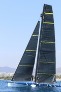 Det är varmt här. Varmast hittills med topp på 36 grader i början av veckan. Många liter vatten går åt!! På vattnet, med fartvinden och skvätt är det helt ok men inne på hamnplan när vi grejar är det tuffare, minst sagt. Vinden har varierat mellan lättare spannet, 6 kts upp till 24kts. En rejälare nosedive ena dagen men annars inga skador eller problem mer än några tekniska där hydrauliken krånglade lite en av dagarna. Vi har ett väldigt kompetent team, det märks att många har varit del av stora America’s Cup satsningar innan.