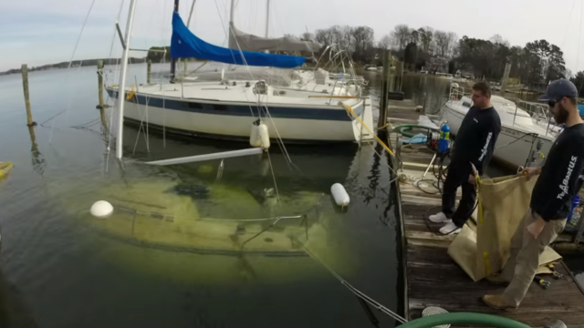Att bärga en sjunken båt kan vara en gedigen uppgift. I det här fallet ligger dock inte båten så djupt, och på behändigt avstånd från bryggan... Spana in denna timelapse av en bärgning!