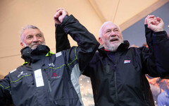Jean-Luc Van Den Heede skrev in sig i rekordböckerna efter att ha vunnit Golden Globe Race 2018. I samma veva knep han titlen "åldermannen" (äldsta personen att ha genomfört något liknande). Det tog Jean-Luc 211 dagar, 23 timmar, 12 mnuter och 19 sekunder att genomföra varvet runt jorden. Här i sällskap av Sir Robin Knox-Johnston. Foto: Tim Bishop/PPL/GGR