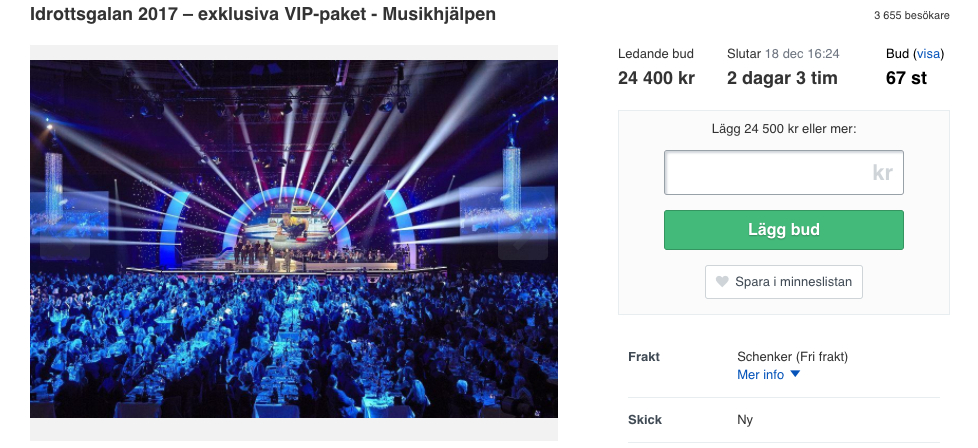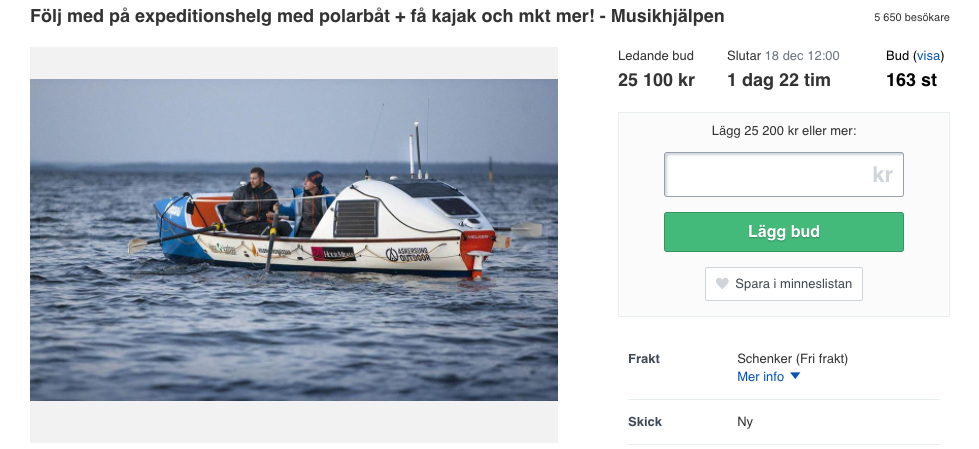 För två år sedan auktionerade Team Anna Sailig ut enheldags segling med teamet och vinnaren fick så mycket mer än bara segling. Att buda på en auktion Musikhjälpen hjälper inte bara barn i krisländer att få tillgång till skola, det kan även ge dig en upplevelse för livet. Klicka på rubrikerna för att komma till de olika auktionerna. Och har du fått nys om någon liknande auktion? Tipsa oss gärna!