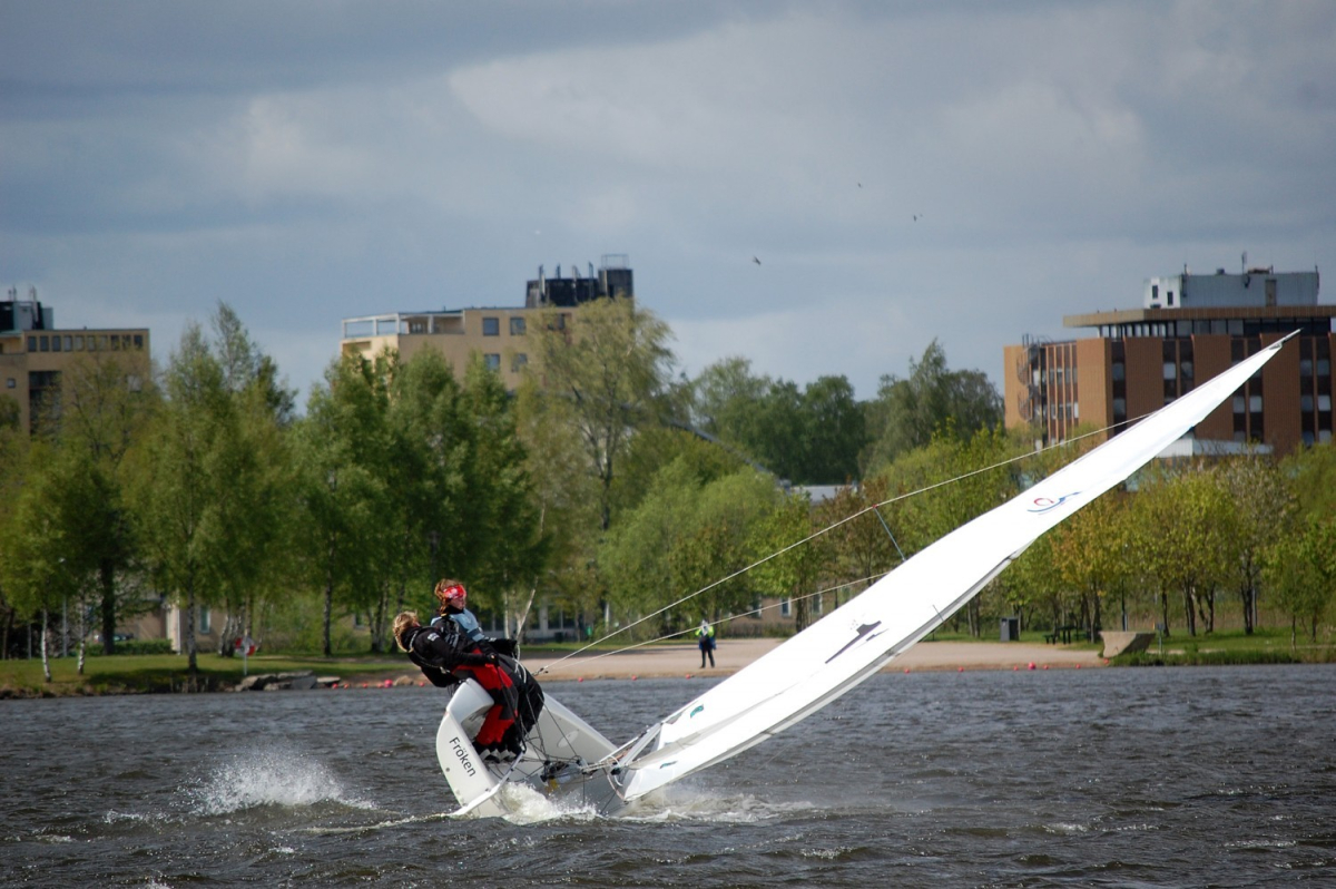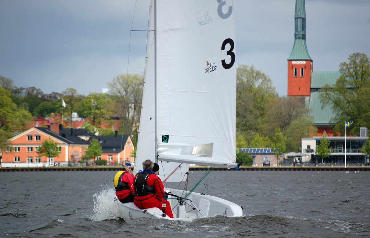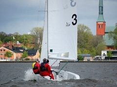 Normalt seglar vi på Helgasjön strax norr om Växjö, men med ett stort engagemang har vi lyckats få till vår del av Tour de Småland och segla mitt inne i centrala Växjö. Vi är 45-50 familjer som är engagerade i klubben som är ett gott gäng. Anton Dahlberg som nu seglar i landslaget började sin seglingsbana hos oss, så även i Småland kan man påbörja en seglingskarriär som kan ta dig långt avslutar Stefan Sundberg.