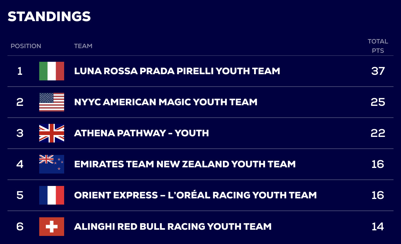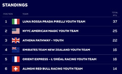 Tabellen nedan visar resultat för grupp A i Unicredit Youth America's Cup efter fyra, av totalt åtta, seglade matcher: