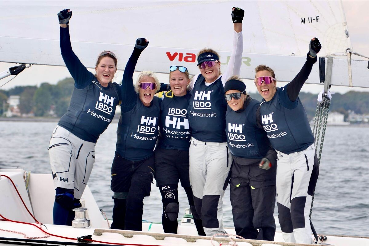 Johanna Bergqvist och hennes besättning vann Womens Sailing Champions League (WSCL) som seglades i Cascais utanför Lissabon i oktober 2021. Foto: Neuza Aires Pereira