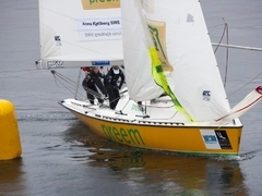 – Det var svårseglat idag, så resultatet känns OK men inte mer, säger Marie Björling Duell, tidigare matchracingrorsman av absolut världsklass men nu taktiker i Kjellbergs besättning.