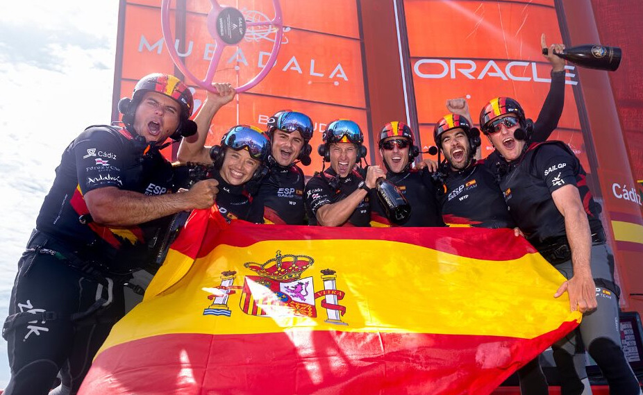 SPOILER ALERT: Spanjorerna med 49er-duon Diego Botin (ratt) och Florian Trittel (vingtrim) i spetsen tog sin andra seger i helgens SailGP Bermuda. New Zealand Black Foils och Australien kom tvåa respektive trea. Inför näst sista tävlingen i Halifax den 1-2 juni leder Nya Zeeland (77 poäng) före Australien (67 poäng) och Spanien (65 poäng). Finalen går av stapeln i New York den 22-24 juni.