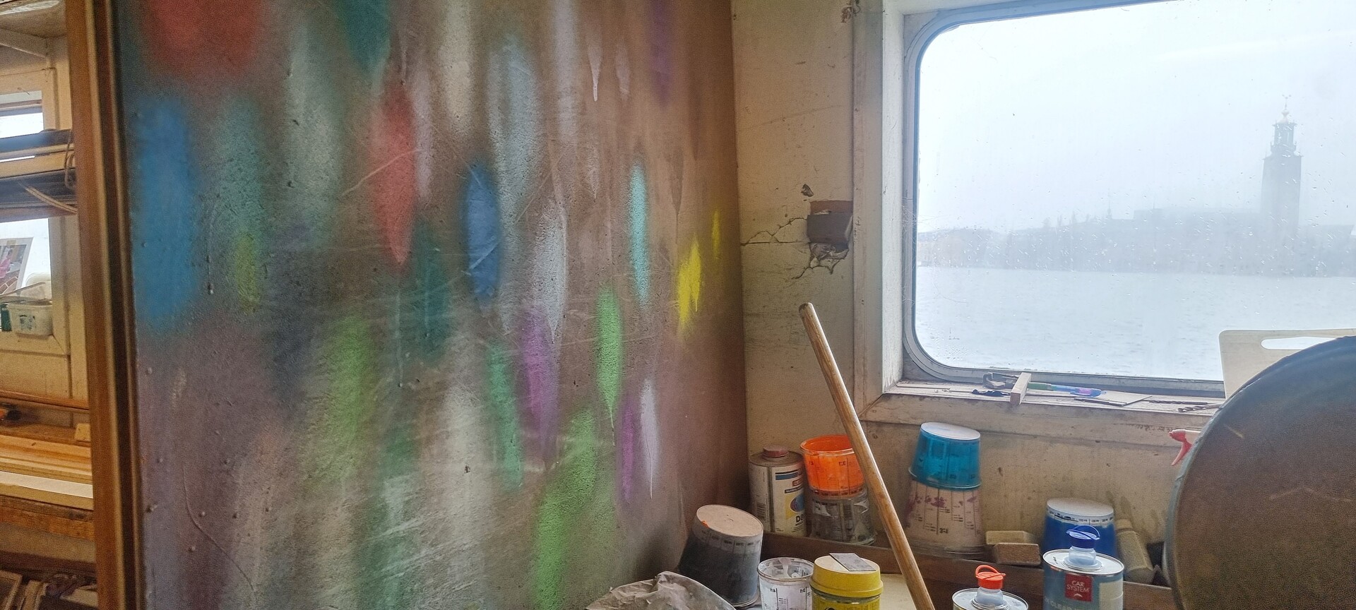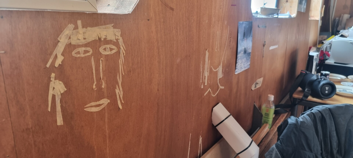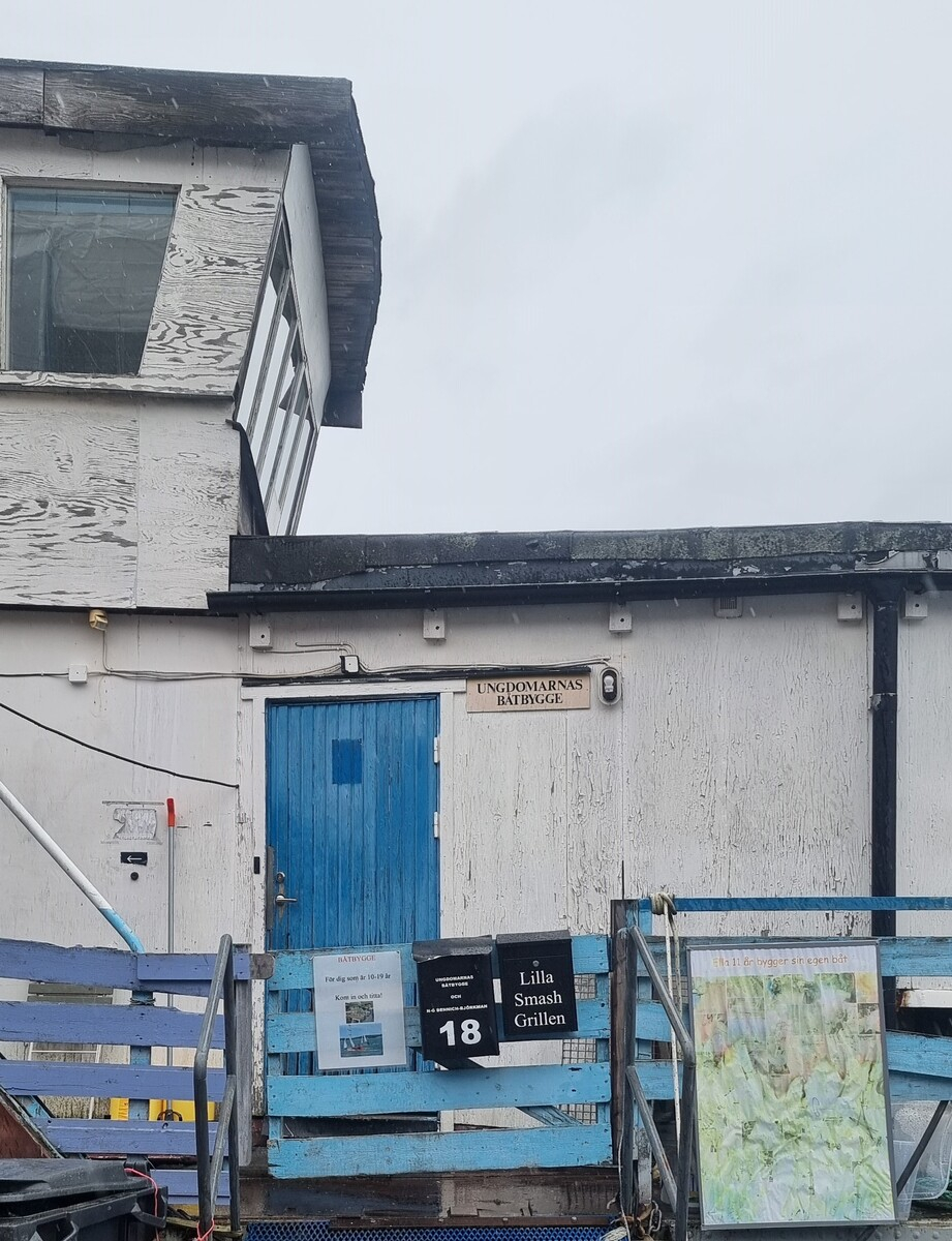 På väggen finns spår av tidigare ungdomar. Nisse vet precis vilken båt som hör till vilken färg, samt vem som byggt den båten och vad den personen gör nu.