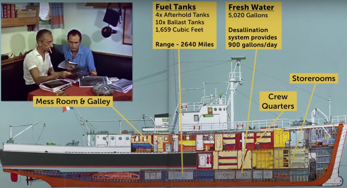 I klippet nedan får vi följa med på en djupdykning i ämnet forskningsfartyget Calypso. Båten byggdes i USA (skrovet är tillverkat i Oregon pine) i slutet av 30-talet och början av 40-talet på uppdrag av amerikanska flottan. Första yrkestiteln var minsvepare för brittisk räkning i Medelhavet. När det jobbet var utfört konverterades hon till bilförja mellan Malta och Gozo (1950-51) för att därefter ikläda sig rollen som det ultimata forskningsfartyget.