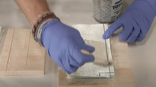 Det kanske ser rätt lätt ut, men kan vara trixigt. För det första; det är bra att förbelägga, rikligt, men inte för mycket (balansen mellan ett starkt och lätt resultat är fin), låt det härda lite grand, förbelägg glasfibern och börja laminera. Använd luftrulle/aluminiumrulle för bästa resultat. Övning ger färdighet så testa gärna innan du drar igång på riktigt.