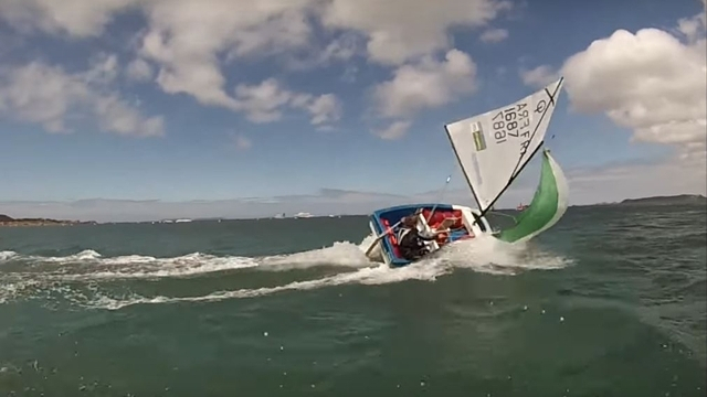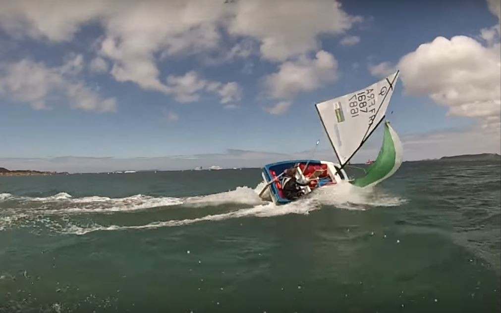 Får du inte nog med fart i din optimist? Gör då som de här barnen och segla med spinnaker.