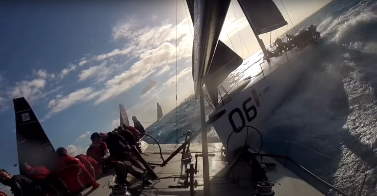 Ajdå. Det där ser verkligen, verkligen inte bra ut. En dramatisk krasch mellan TP52:orna Gladiator och Sled.