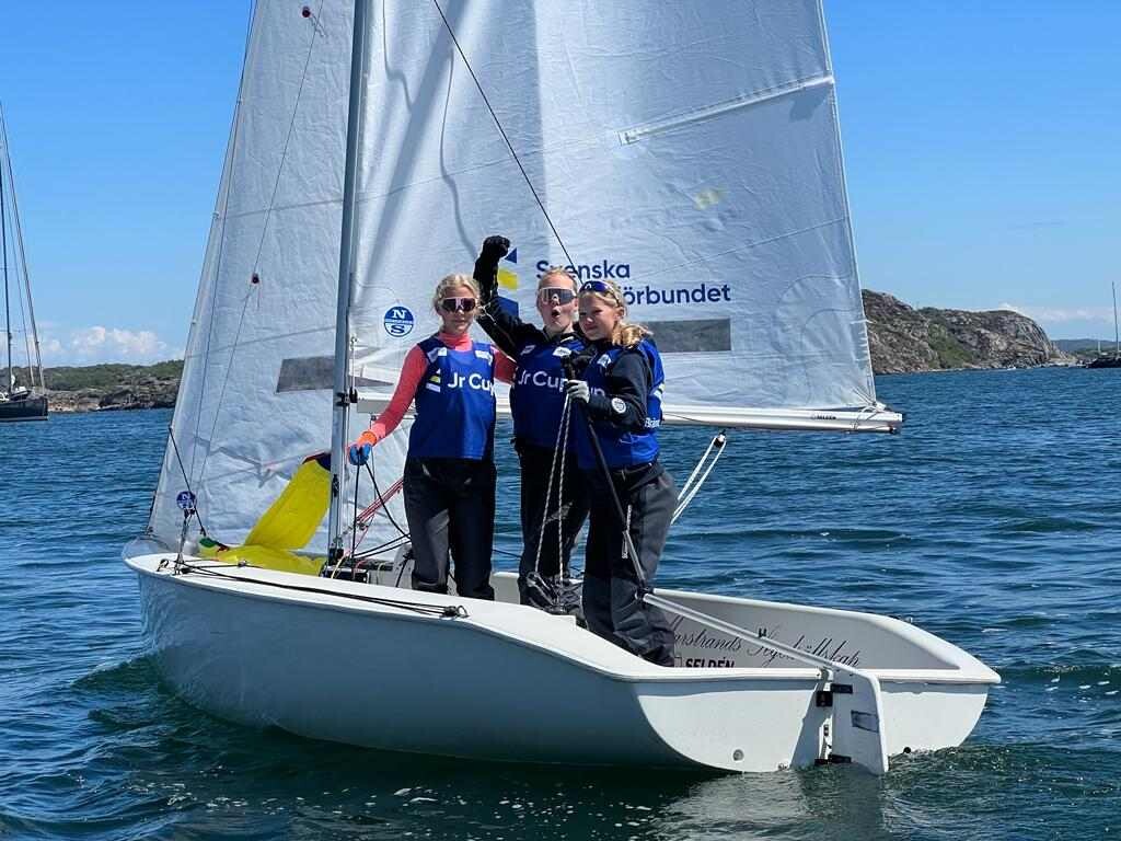 - Mindre än en vecka efter 44Cupen åkte jag tillbaka upp till Marstrand för att segla Jr Cup i C55. Vi var två lag från SS Kaparen. Jag seglade tillsammans med Elvira Mossberg och Freja Duell och vårt lagnamn Brännmanetshajen kommer från en myt i SSKA Seglarskola om en halv brännmanet och en halv haj som lever i Gottskärsfjorden. Brännmanetshajen äter seglarskolebarn som inte lyssnar på instruktörerna, berättar Ella och fortsätter.