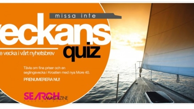 Veckans Quiz hittar du i vårt veckoliga nyhetsbrev. Vinnaren av Veckans Quiz får ett fint pris från någon av våra partners. Dessutom kvalar vinnaren av Veckan Quiz in till Guldfinalen som går av stapeln i början av juni 2017 för att tävla om det stora guldfinalpriset; en seglingsvecka i Kroatien med nya More 40.