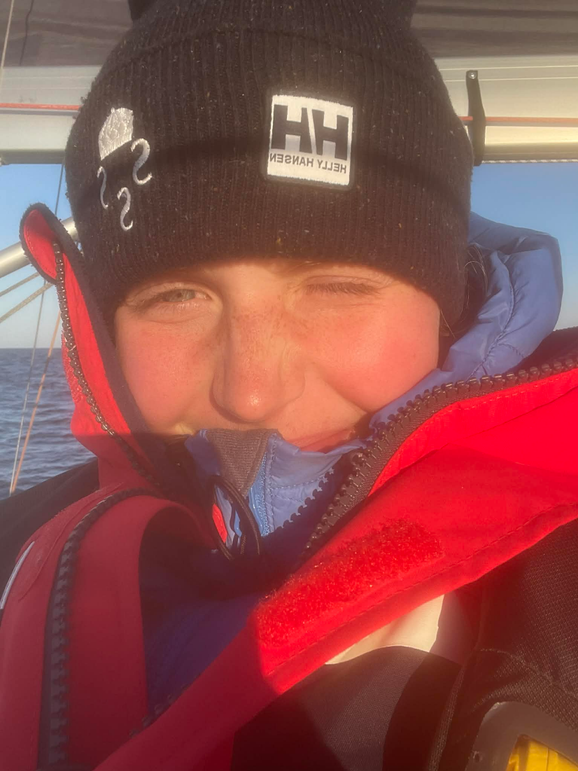 En av de första gångerna Maxine seglar. Foto: Privat