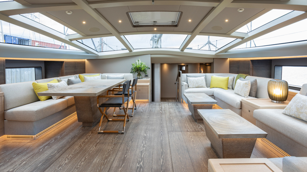 Ombord finns plats för upp till 8 gäster i fyra kabiner, inklusive en Owner’s Cabin och en VIP-hytt, samt plats för 5 besättningsmedlemmar i aktern.