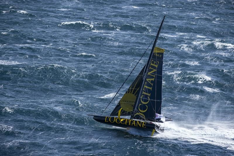 Den franske skepparen Armel Tripon har tvingats vända L’Occitane tillbaka mot land efter att under natten ha fått problem med sin J3:a (hårdvindsfock). Kroken som håller seglet uppe gick sönder så att seglet föll ner. Planen är nu att ankra på en skyddad plats nära land och reparera skadan