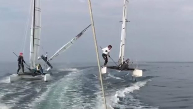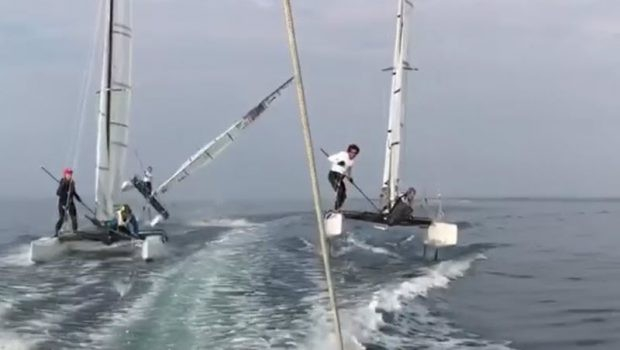Video: Att bli bogserad på foils kan gå illa1 AV 1July 31 @ 10:07 Foto: bora gulariDet höll på att gå illa för de amerikanska Nacra 17-seglarna när de blev bogserade häromdagen utanför Århus. Klippet kommer från Bora Gulari. DelaShare with Twitter X Share with Facebook Share link Kopiera