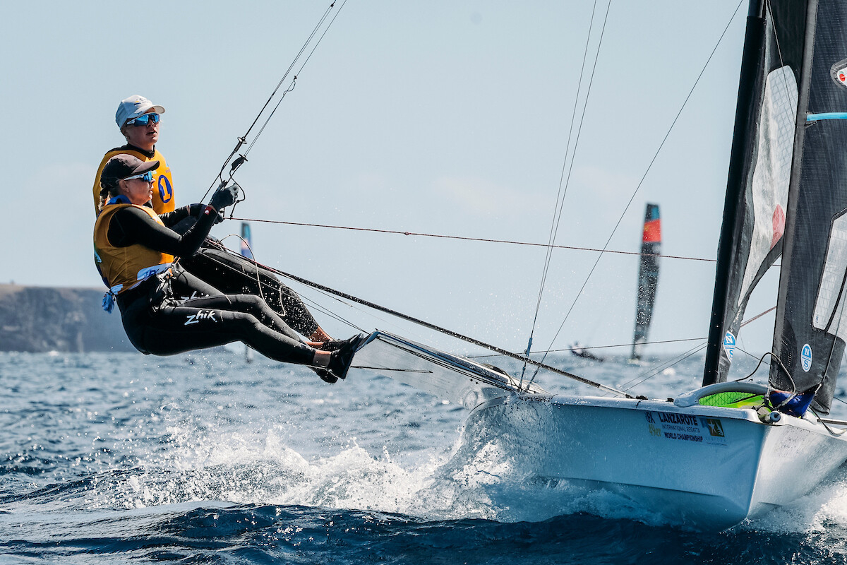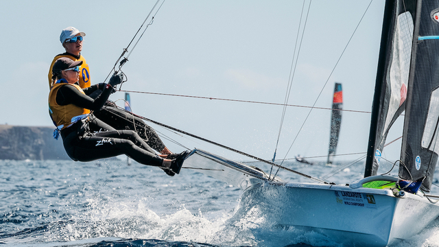 Av VM 2024 återstår fem race av totalt 16, så mycket kan fortfarande ändras. Vilma och Rebecca möter tuffast möjliga motstånd. Framför sig i resultatlistan har de nederländskorna, Odile van Aanholt/Annette Duetz, som vann VM både 2021 och 2022. Och närmast bakom de svenska världsmästarna jagar Martine Grael/Kahena Kunze från Brasilien som vann OS både 2016 och 2020.