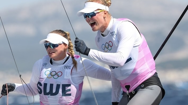 Vilma Bobeck/Rebecca Netzler bjöd på strålande segling i två av onsdagens tre race i 49erFX. Det tredje blev något tuffare för svenskorna som ligger kvar på bronsplats – men de har minskat avståndet rejält upp till Nederländerna och Frankrike som ligger före. Nu återstår endast ett finalrace.